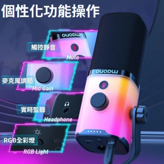 Maono DM30 RGB 是一款針對遊戲玩家、直播主、Podcaster 及內容創作者設計的高性能可編程 USB 電容式麥克風。它集強大功能、直覺操控和潮流外觀於一身,提供清晰自然的收音品質與個性化的使用體驗。